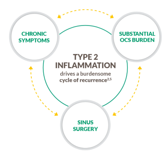 Severe CRSwNP is typically a chronic type 2 inflammatory disease.1–4