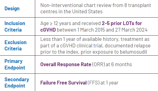 BAT, best available therapy; RCT, randomised control trial; cGVHD, chronic graft-vs-host-disease; FFS, failure-free survival; LOT, lines of therapy; ORR, overall response rate.