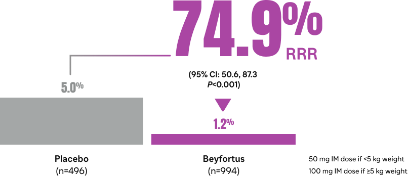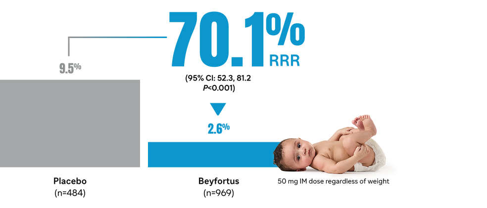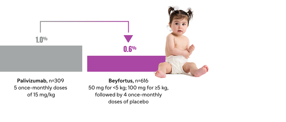 Beyfortus in RSV hospitalizations compared with placebo1,7