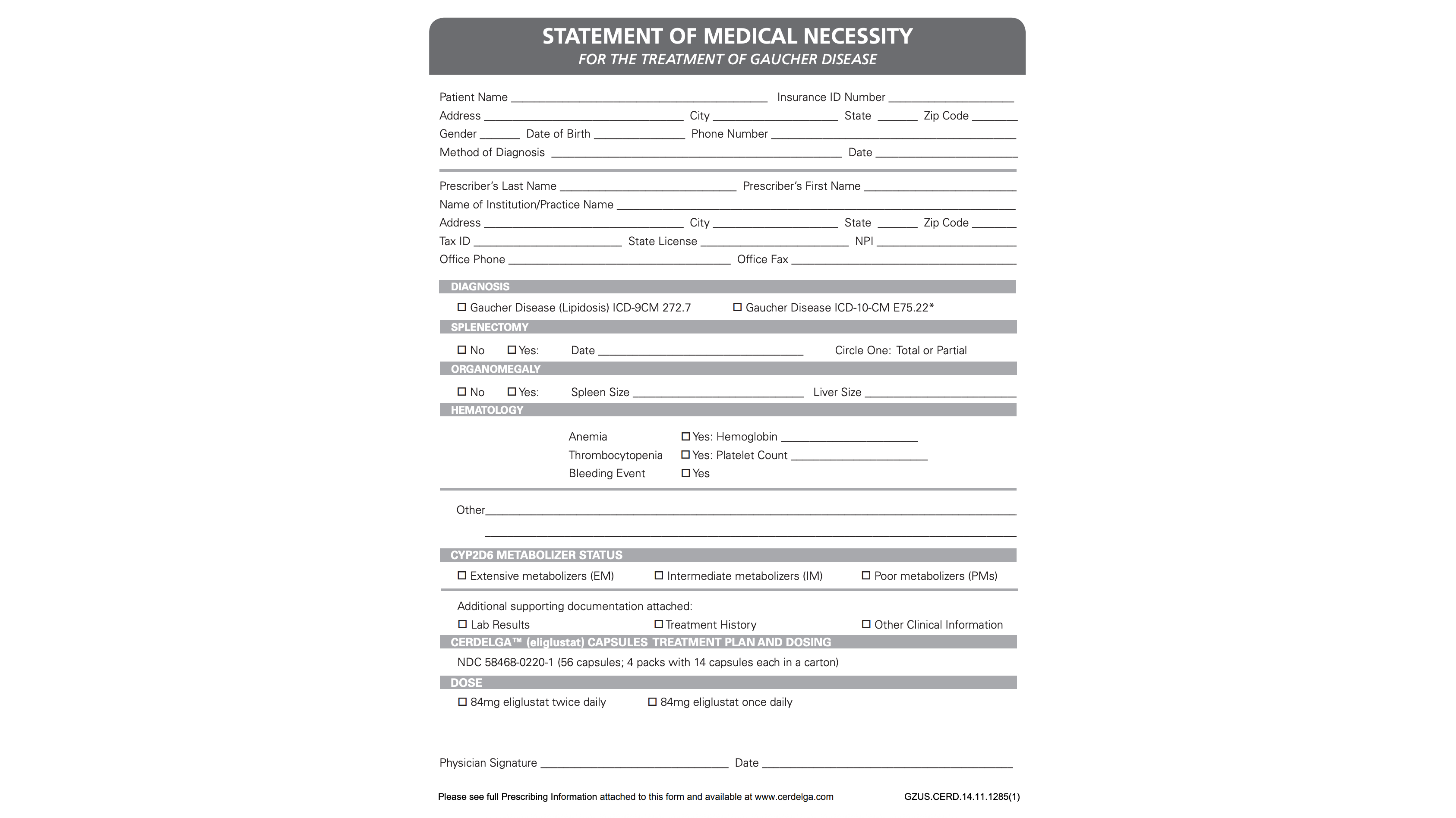 Reference: 1. Cerdelga (eliglustat). Prescribing Information. Sanofi.