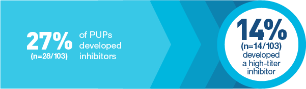 Among clinical trial subjects younger than 6 years (median 0.58 year; range: 0.02–4 years), the development of neutralizing antibodies to FVIII was monitored: